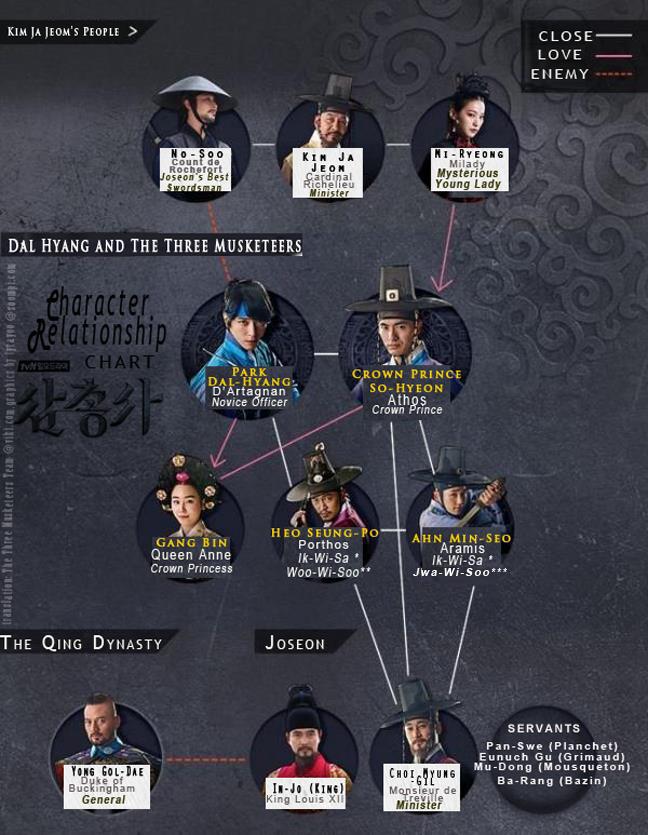 Drama ini adalah berdasarkan sebuah novel Perancis 'The Three Musketeers " oleh Alexandre Dumas yang pertama kali disirikan pada Mac-Julai 1844.